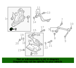 Knuckle and control arms, front upper.